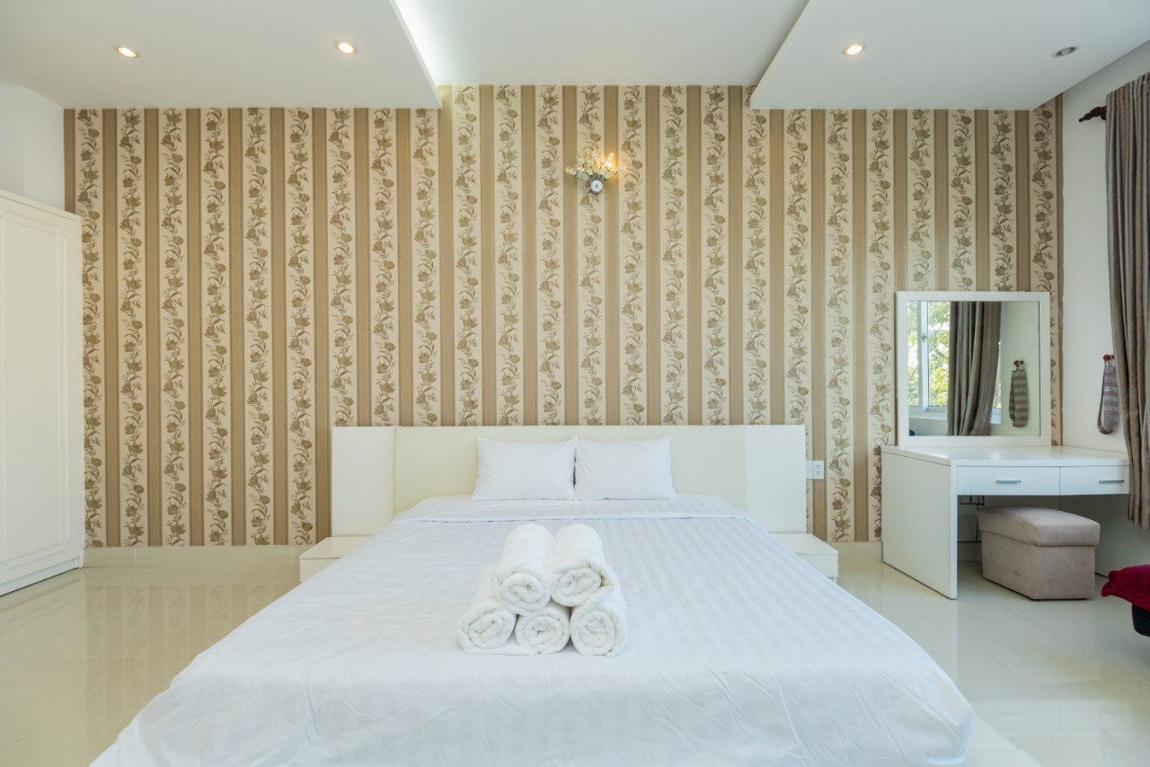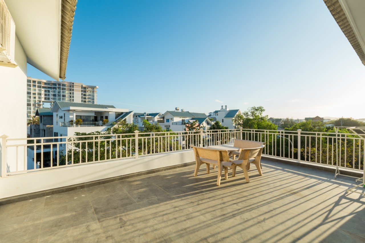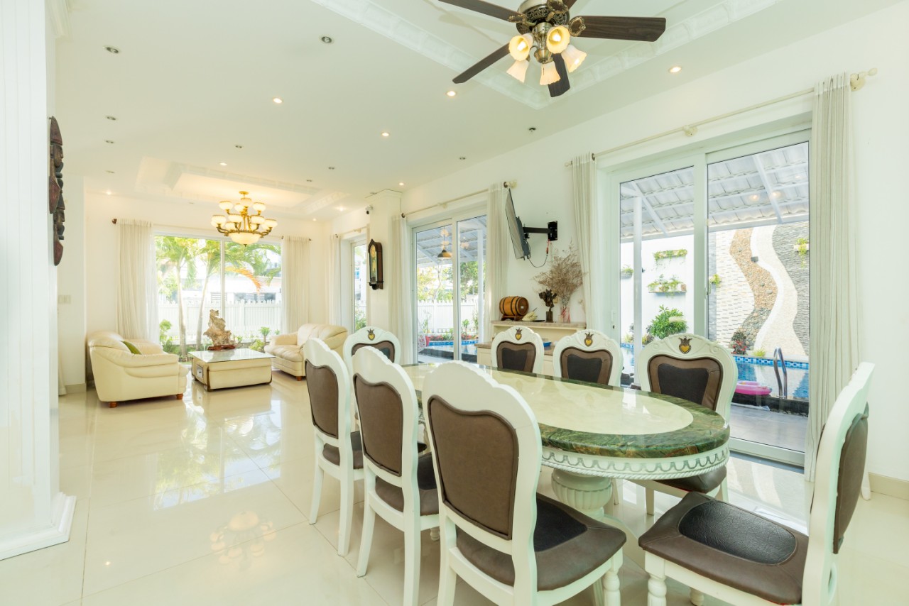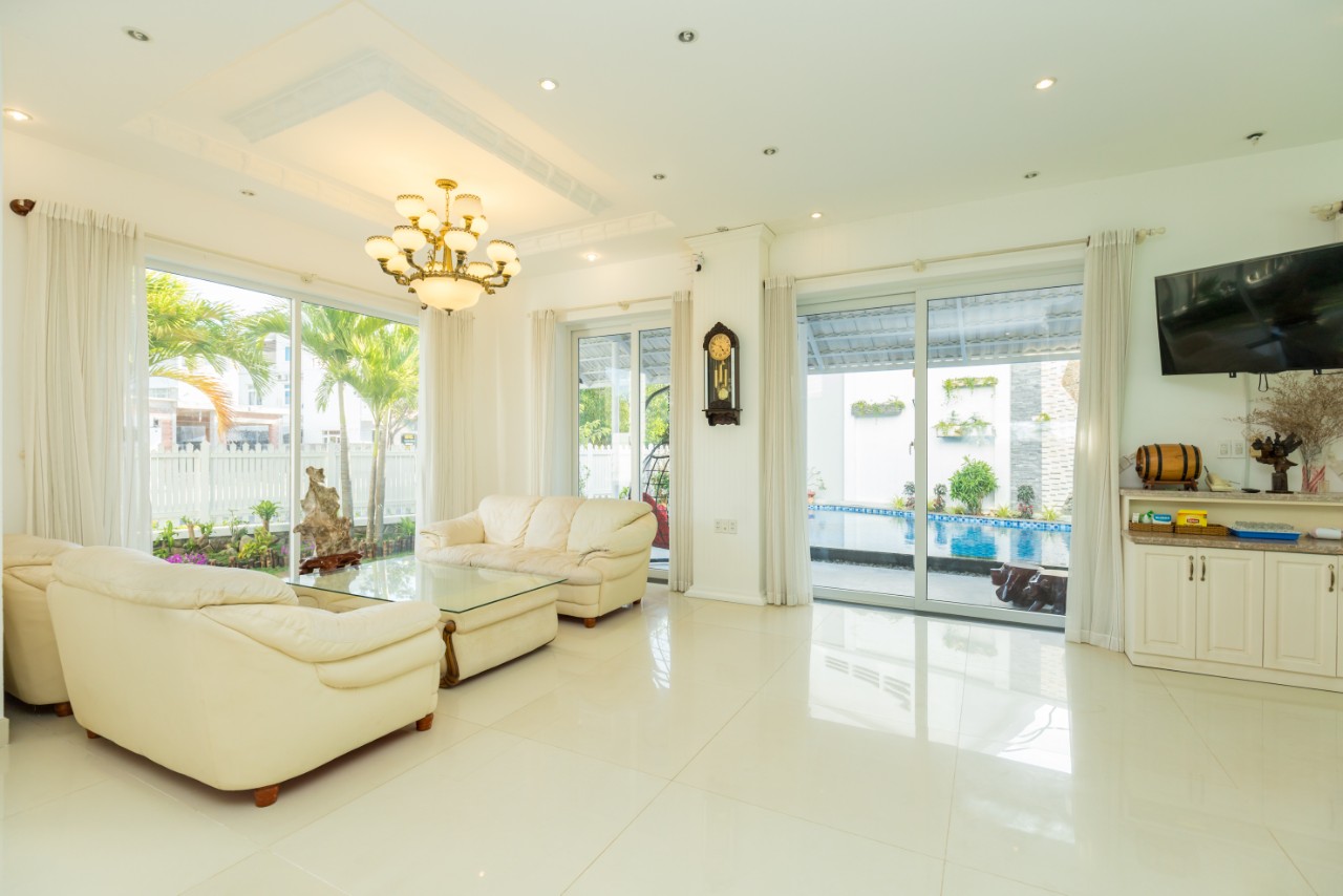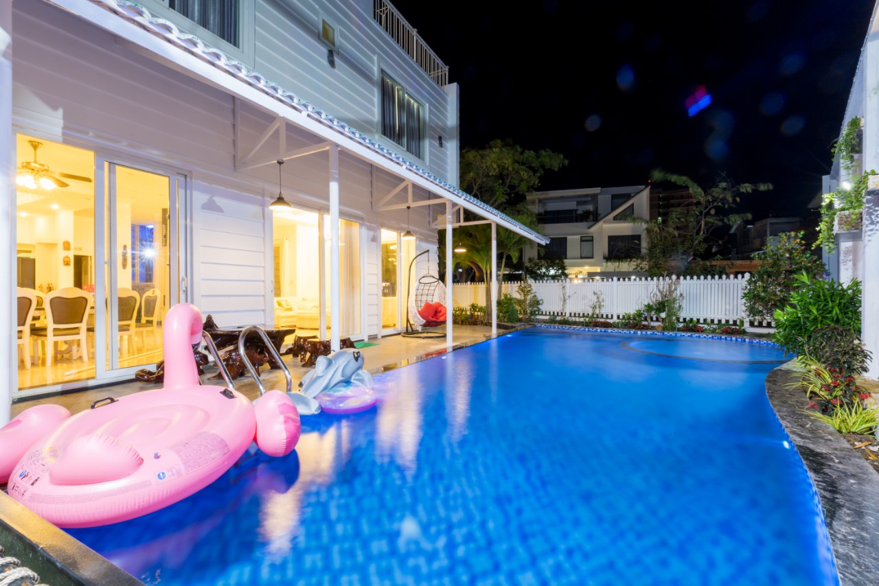 1 trong những villa có khuôn viên cây cối xanh tươi mát lành, tựa như đang ở Đà Lạt mộng mơ vậy. Hồ bơi rộng lớn, sân vườn bốn mùa xanh tươi, tạo cảm giác dịu mát và vô cùng dễ chịu. Các phòng đều được đón gió từ biển khơi, chắc chắn sẽ đem lại nhiều cảm xúc khác lạ cho du khách.