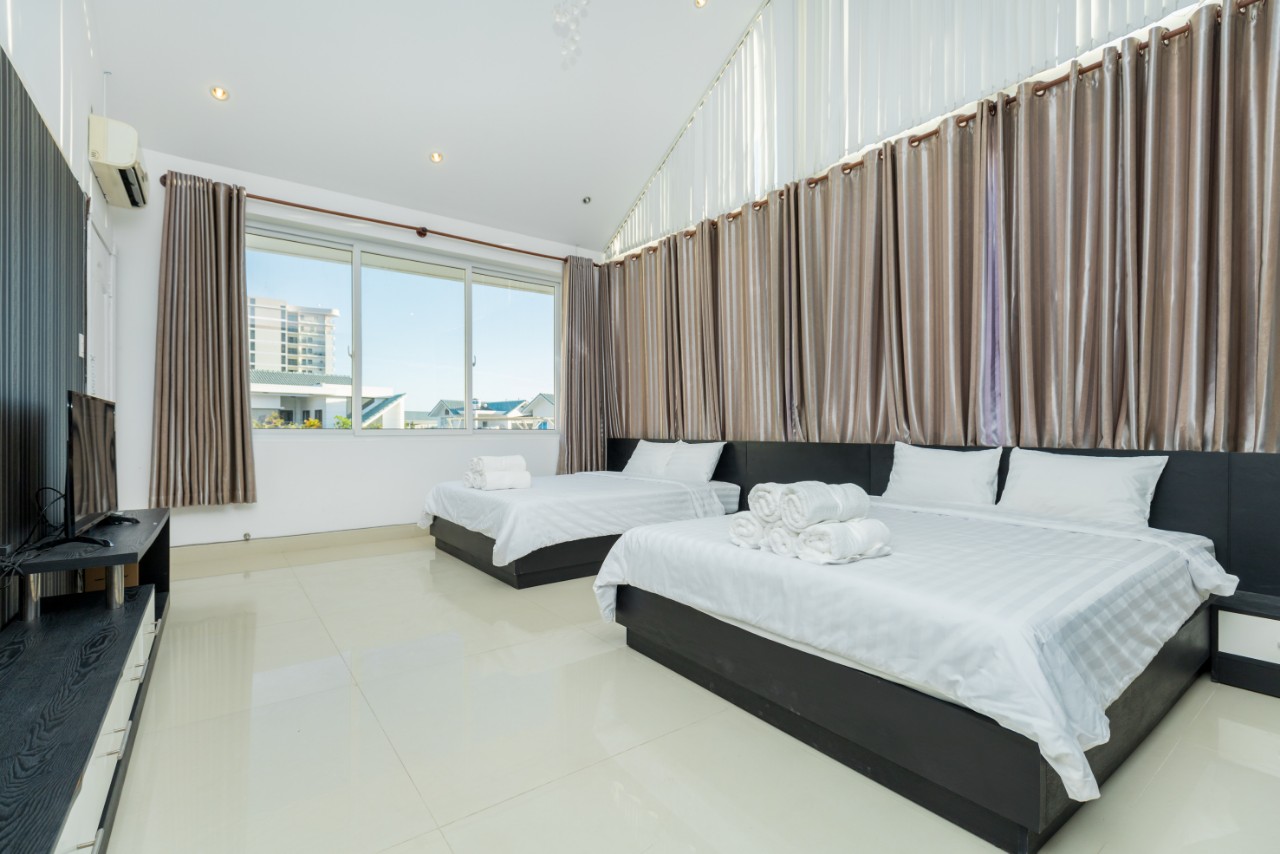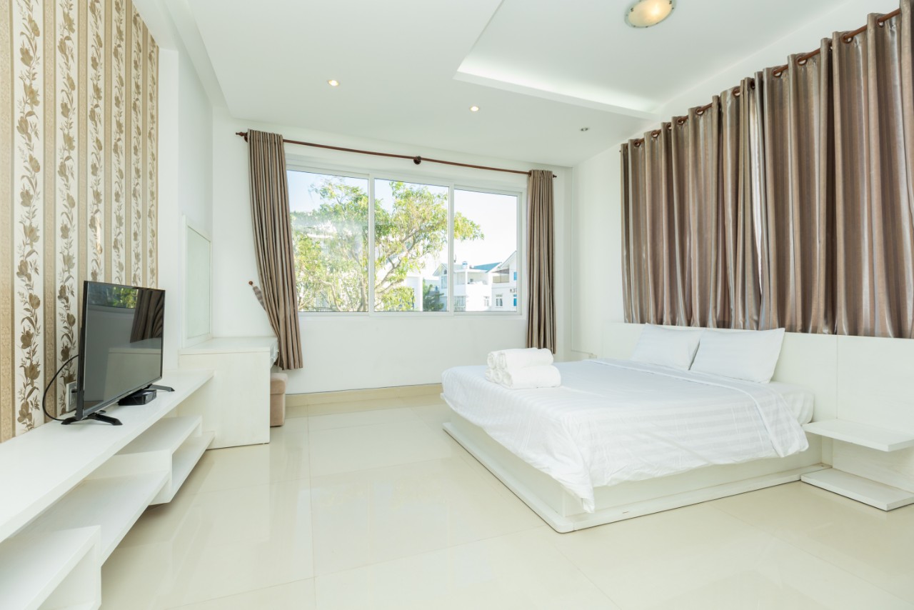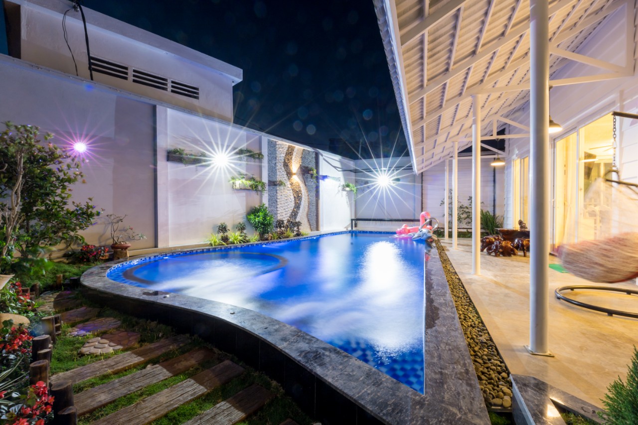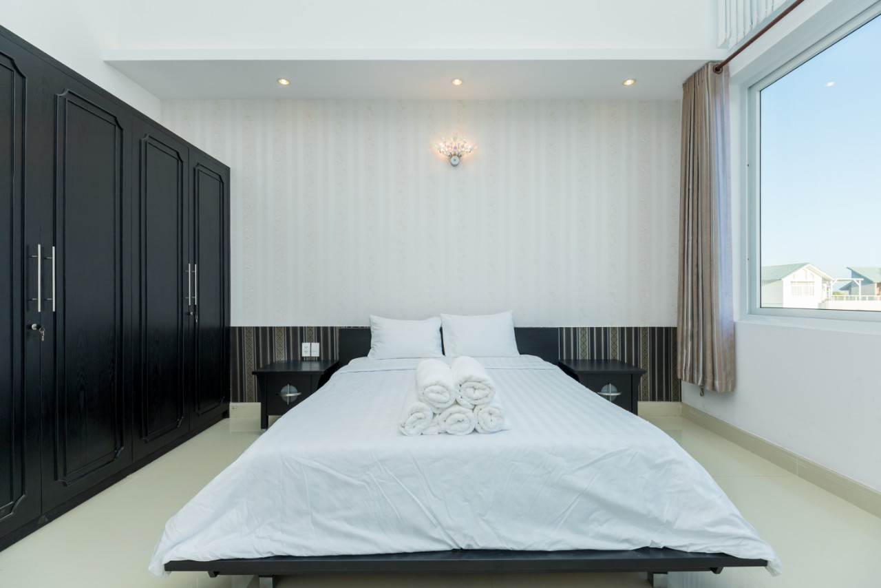 1 trong những villa có khuôn viên cây cối xanh tươi mát lành, tựa như đang ở Đà Lạt mộng mơ vậy. Hồ bơi rộng lớn, sân vườn bốn mùa xanh tươi, tạo cảm giác dịu mát và vô cùng dễ chịu. Các phòng đều được đón gió từ biển khơi, chắc chắn sẽ đem lại nhiều cảm xúc khác lạ cho du khách.